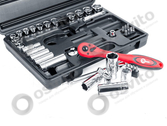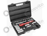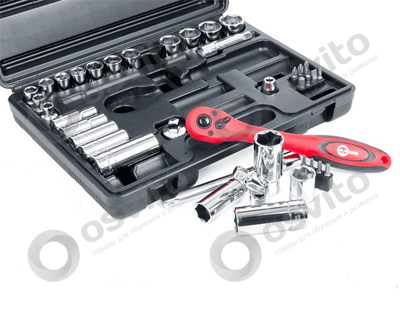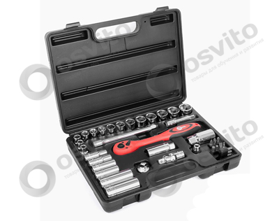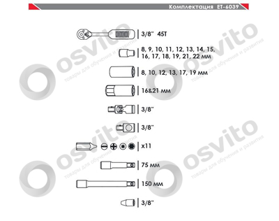 Професійний набір інструментів INTERTOOL ET-6039 включає в себе 39 одиниць інструменту, укомплектовані в кейс з ударостійкого пластику. Використаний розмір квадрата - 3/8 ". Всі інструменти виготовлені з хром-ванадієвої сталі підвищеної міцності зі спеціальним покриттям, що захищає від корозії. Цей набір є ідеальним помічником в обслуговуванні автомобіля. На окрему увагу заслуговує рукоятка з храповим механізмом (тріскачка) на 72 зубця з можливістю скидання і фіксації торцевих головок. Вона також виготовлена з хром-ванадієвого сталі і при цьому покрита захисним шаром з поліпропілену, повністю запобігає можливість появи корозії.